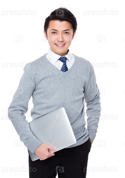 Азиатский молодой бизнесмен с ноутбуком
