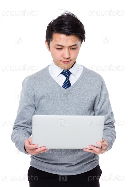 Азиатский молодой бизнесмен с ноутбуком