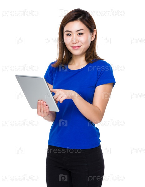 Молодая азиатская женщина с планшетом