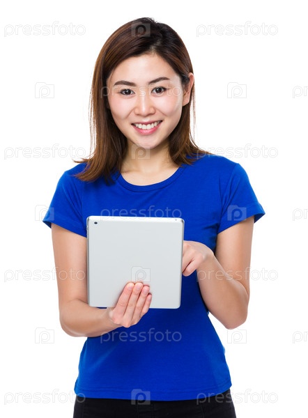 Молодая азиатская женщина с планшетом