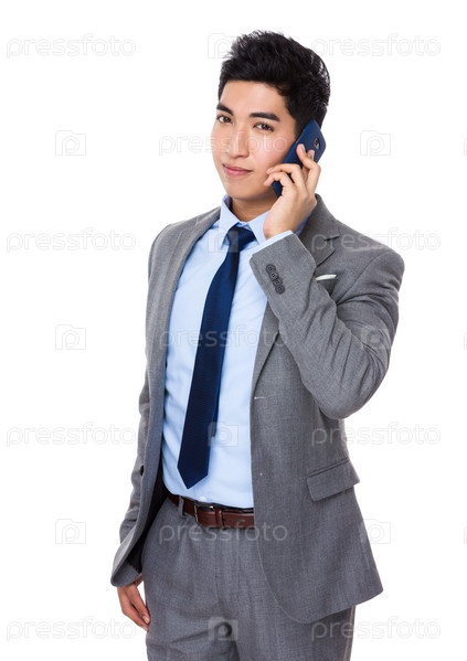 Азиатский молодой бизнесмен говорит по мобильному телефону