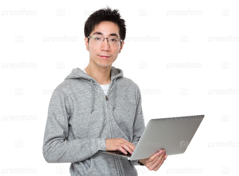 Азиатский мужчина с ноутбуком