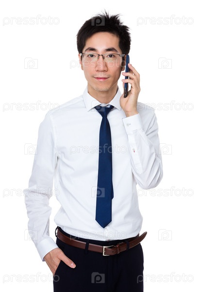 Азиатский молодой бизнесмен говорит по мобильному телефону