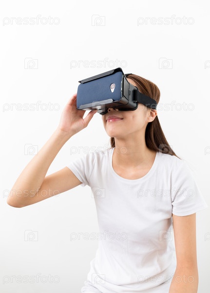 Молодая женщина с гарнитурой виртуальной реальности