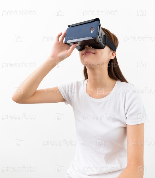 Азиатская женщины с устройством виртуальной реальности