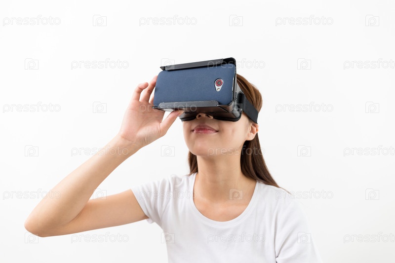 Азиатская женщины с устройством виртуальной реальности