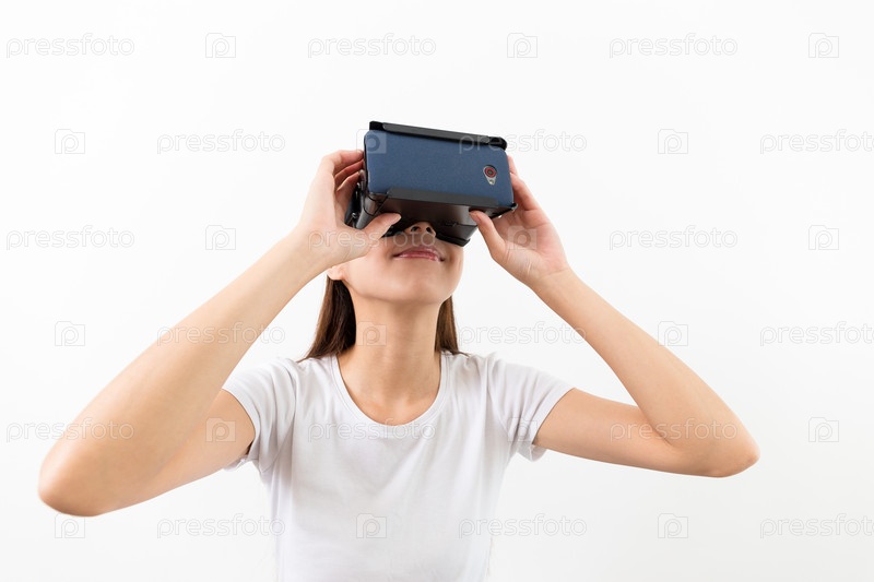 Азиатская женщины с устройством виртуальной реальности