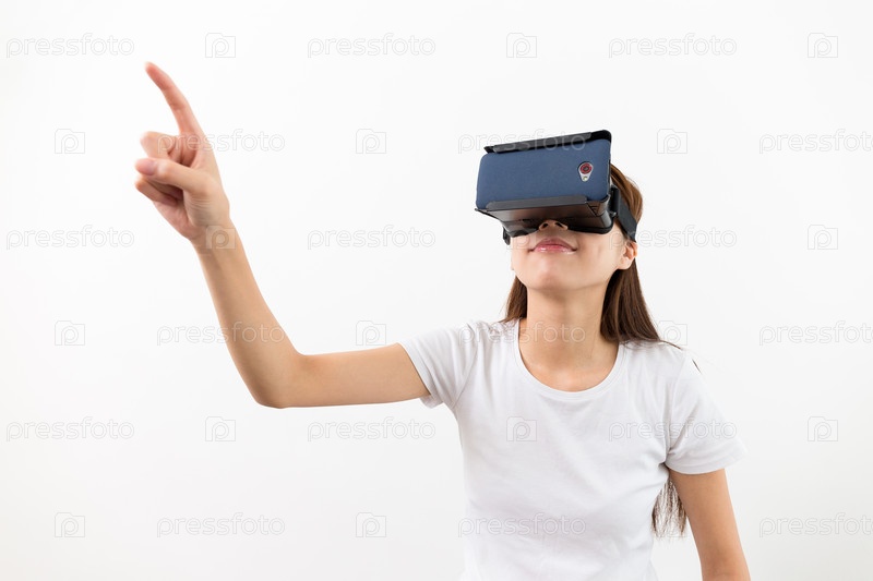 Азиатская женщины с устройством виртуальной реальности