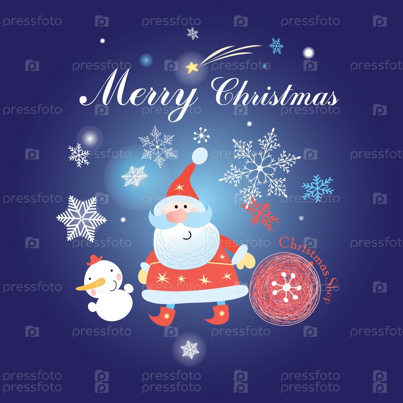 Новогодний фон с Снеговик и Санта Клаус
