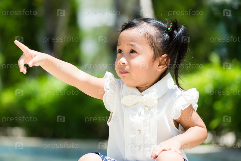 Маленькая девочка пальца указывают на другую сторону