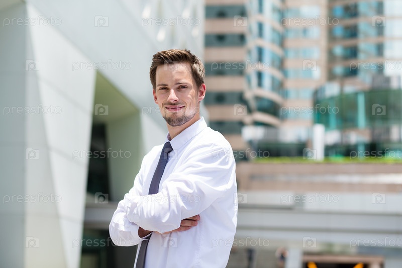 Молодой предприниматель в открытый воздухе