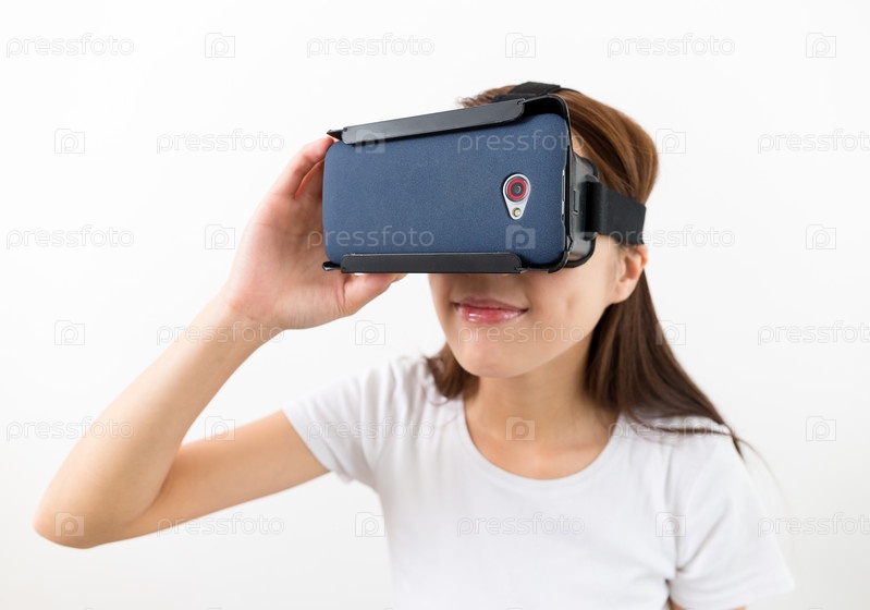 Азиатская женщины с устройством виртуальной реальности