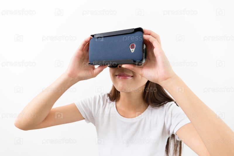 Азиатская женщины с устройством виртуальной реальности