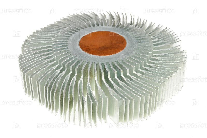 Круглый алюминиевый радиатор на белом фоне