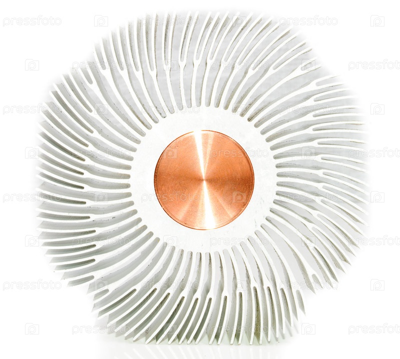 Круглый алюминиевый радиатор на белом фоне