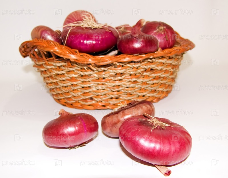 Красный репчатый лук в корзинке