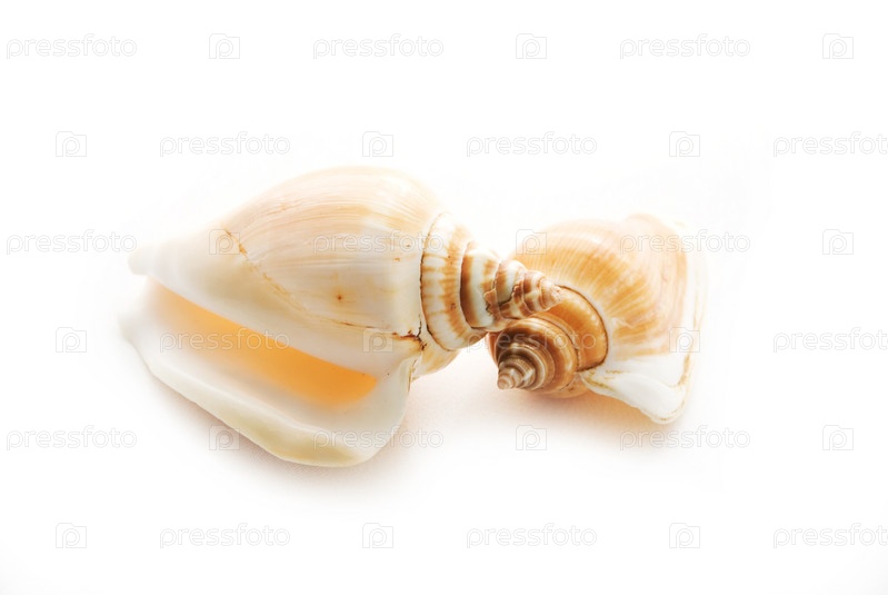 Морские ракушки на белом фоне