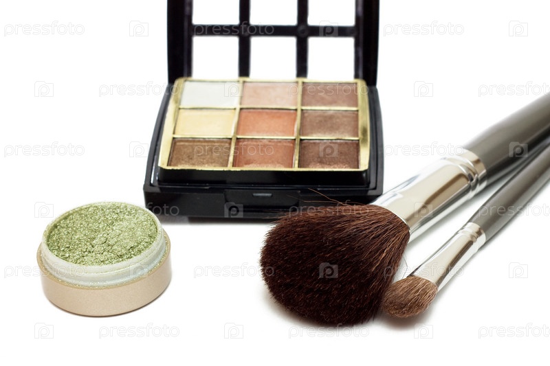 Макияжный набор с кистями и тени для глаз, изолированные от белого