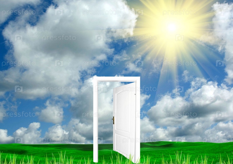 Открытая дверь на летней поляне