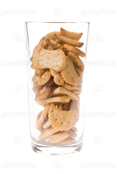 Крекеры в прозрачном стекле на белом фоне