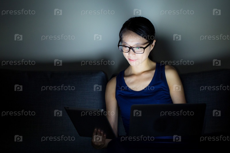 Девушка с планшетом и ноутбуком