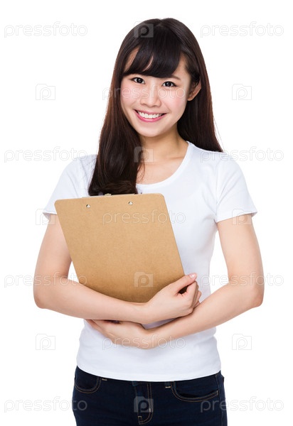 Молодая женщина с планшеткой