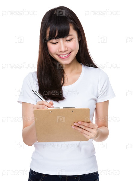 Молодая женщина с планшеткой