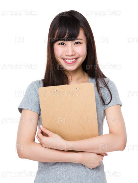 Молодая женщина с планшеткой