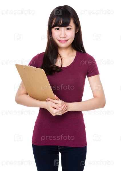 Молодая женщина с планшеткой