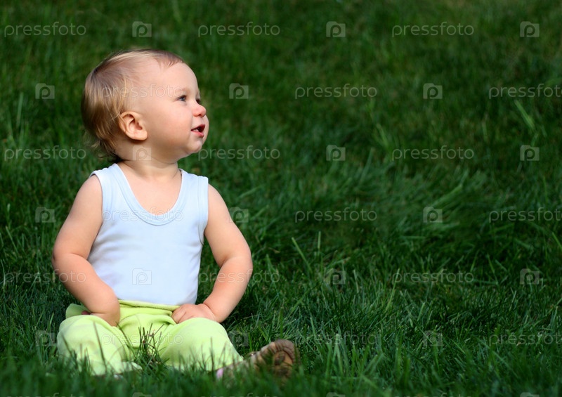 Мальчик сидит на траве
