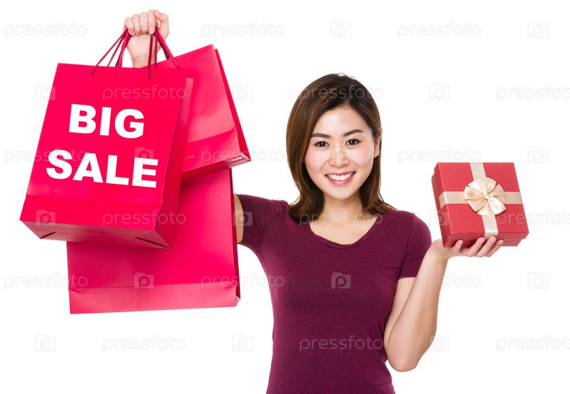 Азиатская женщина с покупками