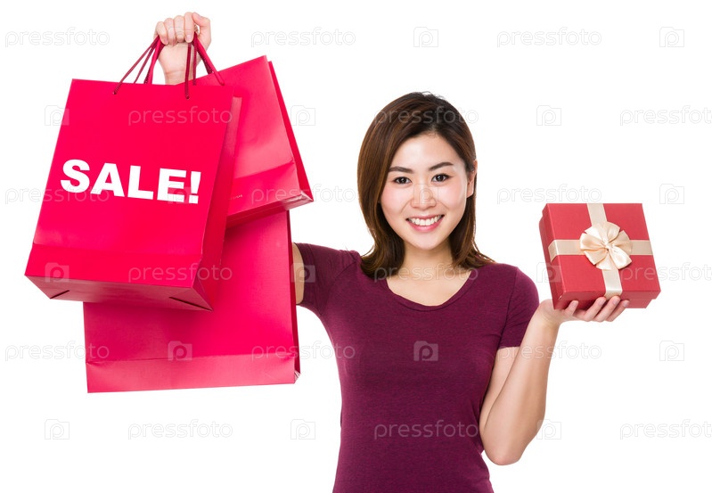 Азиатская женщина с покупками