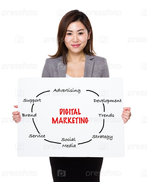 Азиатская бизнес-леди с плакатом