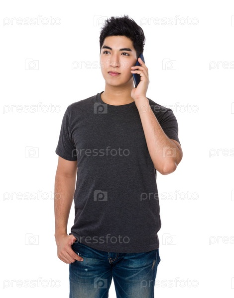 Азиатский молодой парень с мобильным телефоном