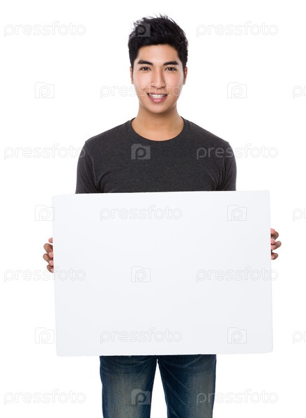 Молодой человек с белым плакатом