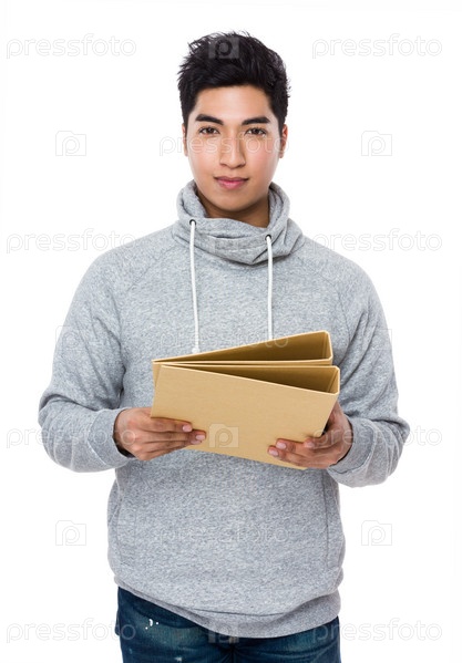 Азиатский парень с папками