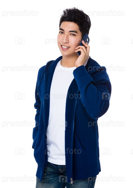 Азиатский молодой парень с мобильным телефоном