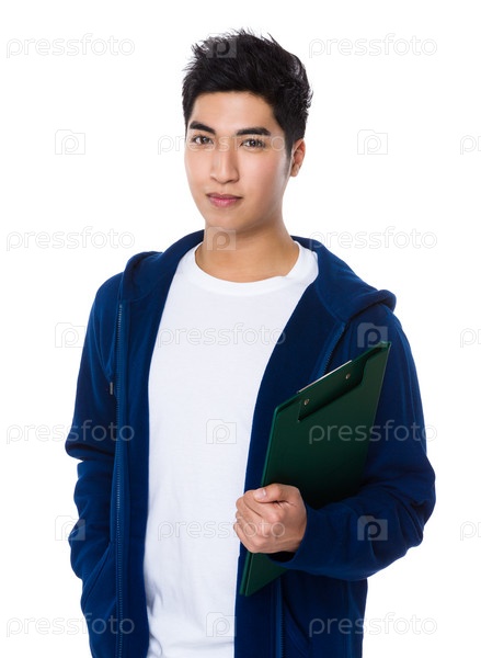 Азиатский молодой парень с планшеткой