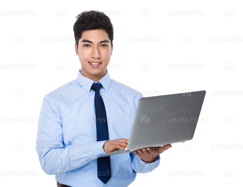 Азиатский бизнесмен с нотубуком