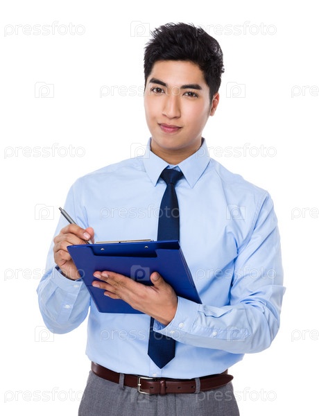 Азиатский молодой бизнесмен с планшеткой