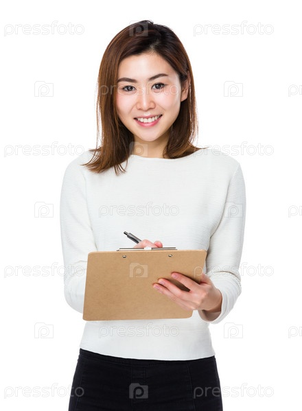 Молодая женщина с планшеткой