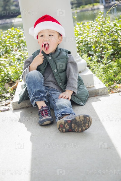 Мальчик носит шляпу Санты