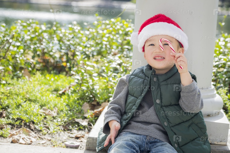 Мальчик носит шляпу Санты