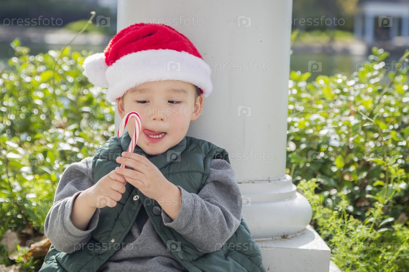 Мальчик носит шляпу Санты