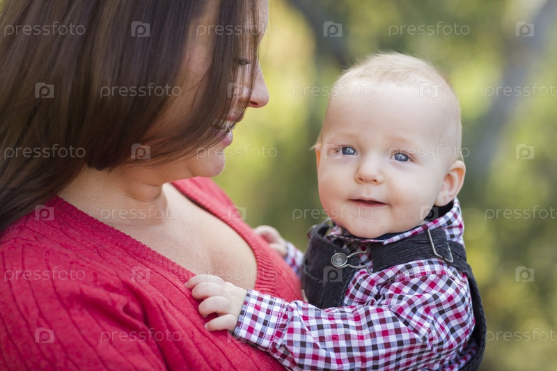 Маленький мальчик, весело с мама на открытом воздухе