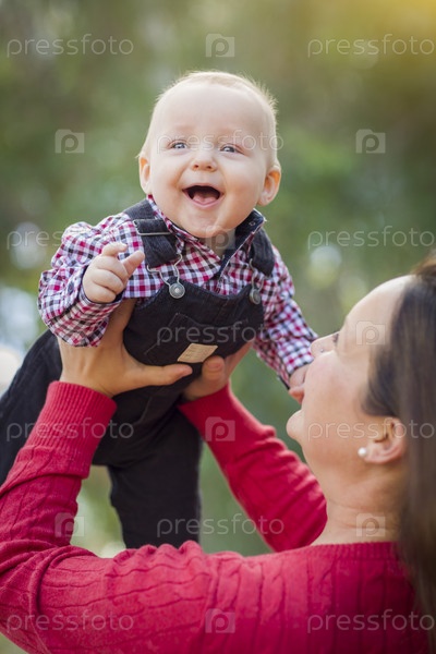 Маленький мальчик, весело с мама на открытом воздухе