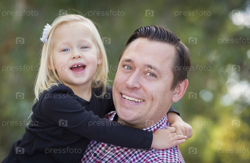 Очаровательны маленькая девочка, весело с папа на открытом воздухе