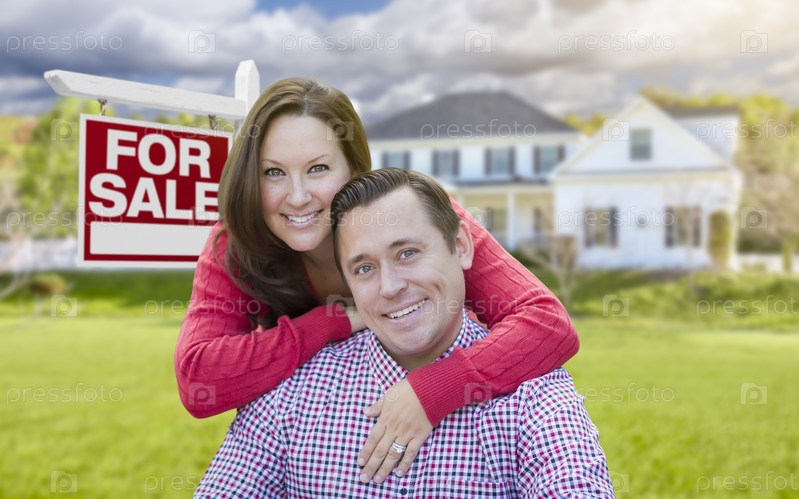 Счастливая пара в передней части для продажи дома