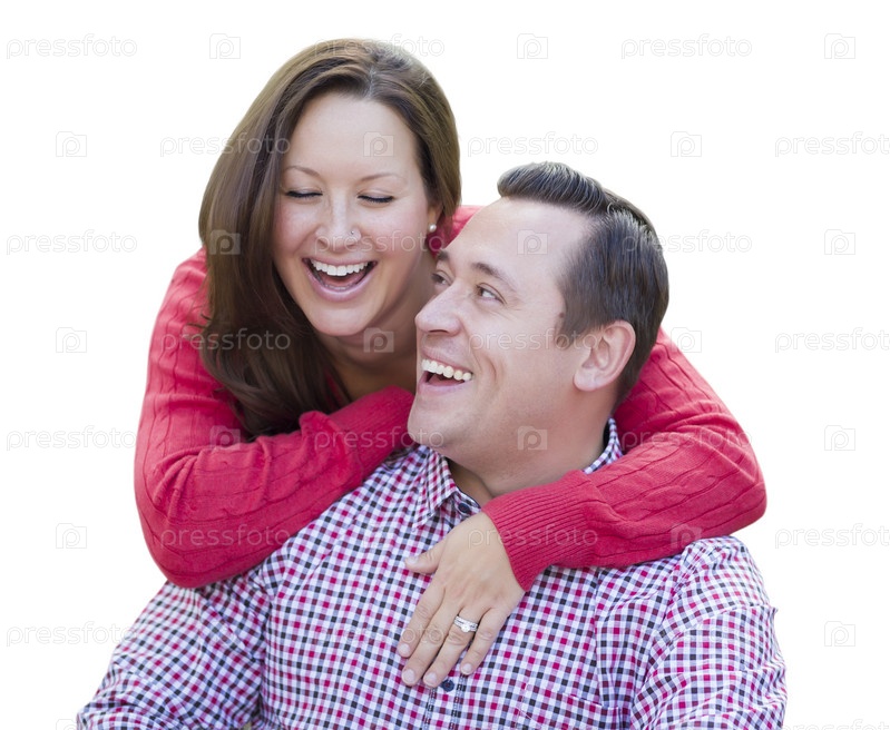 Привлекательных пару смеется, изолированные на белом