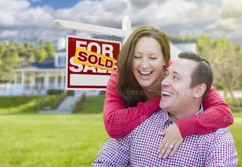 Счастливая пара в передней части для продажи дома